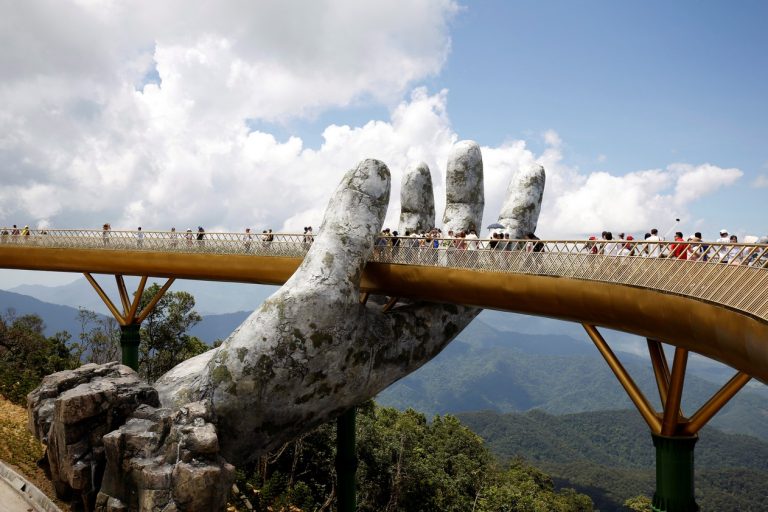 Uma ponte de 150 metros de comprimento e 1.400 metros de altura apoiada por duas mãos gigantes se tornou uma das principais atrações turísticas do Vietnã.