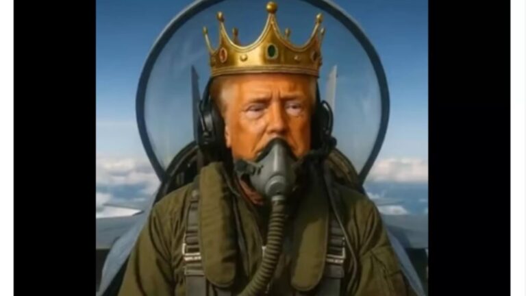 O presidente dos Estados Unidos, Donald Trump, publicou no sábado (18) um vídeo gerado por inteligência artificial em sua rede Truth Social. Nas imagens, ele aparece em um avião batizado de King Trump (“Rei Trump”, em português) despejando fezes sobre manifestantes reunidos na Times Square, em Nova York.