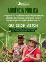 Através de uma propositura da vereadora Jô Oliveira (PCdoB), a Câmara Municipal de Campina Grande vai realizar audiência pública para debater os impactos da implementação de parques de geração de energias renováveis para a agroecologia na região do Pólo da Borborema. A audiência acontece nesta quinta-feira (28), a partir das 10h, na Casa de Félix Araújo.