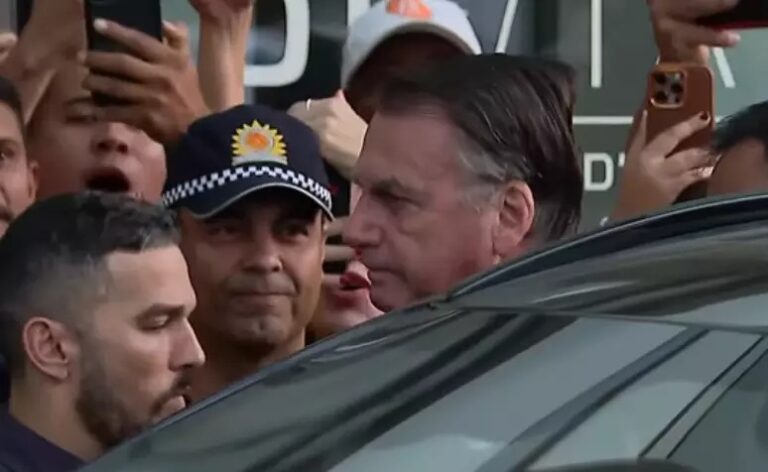 Bolsonaro chegou escoltado pela Polícia Penal do Distrito Federal ao hospital, onde também havia reforço do patrulhamento policial. Apoiadores com camisas verde e amarela aparecem ao redor do ex-presidente, tentam contato com ele, mas não foram respondidos.