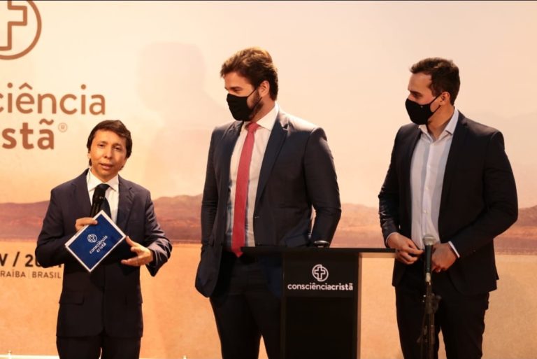 O prefeito de Campina Grande, Bruno Cunha Lima, prestigiou na noite desta quinta-feira, 11, acompanhado da primeira-dama Juliana Figueiredo Cunha Lima, a abertura da edição de 2021 do Encontro da Consciência Cristã, no Centro de Convenções Raymundo Asfora, do Hotel Garden. O vice-prefeito Lucas Ribeiro e ex-prefeito Romero Rodrigues também estiveram presentes à solenidade, que foi marcada pelo agradecimento à Prefeitura pelo apoio histórico ao evento em seus 23 anos de realização.