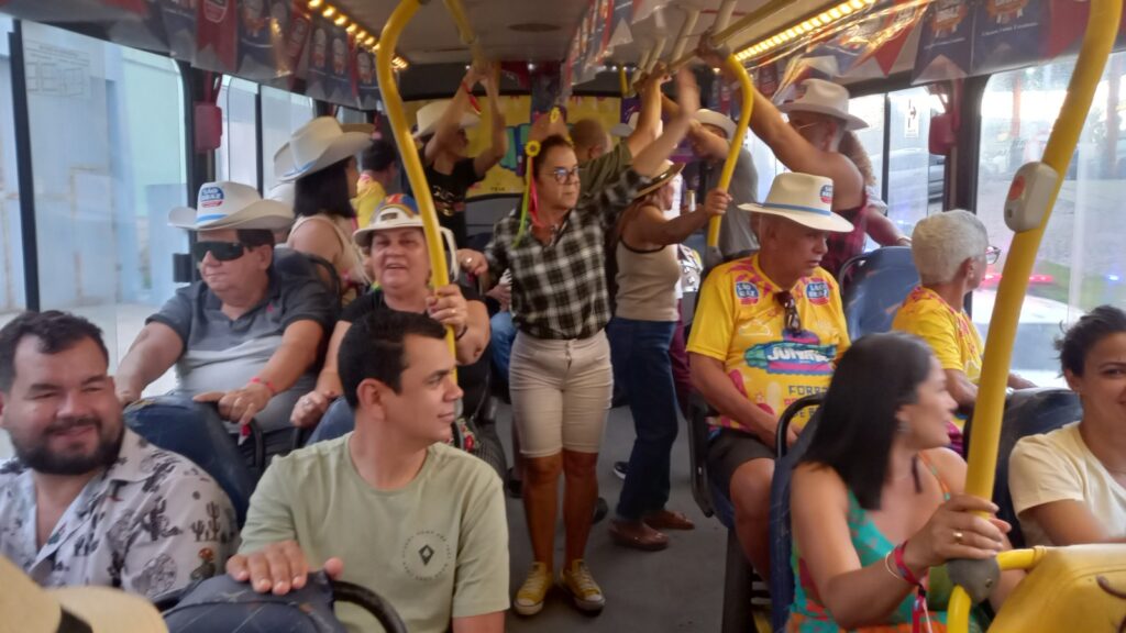 Decorado com elementos típicos das festas juninas, o ônibus proporciona uma experiência única, unindo diversão e cultura em um passeio inesquecível. O trajeto começa em Campina Grande, onde os passageiros embarcam no ônibus decorado com bandeirinhas, balões e outros adornos tradicionais.