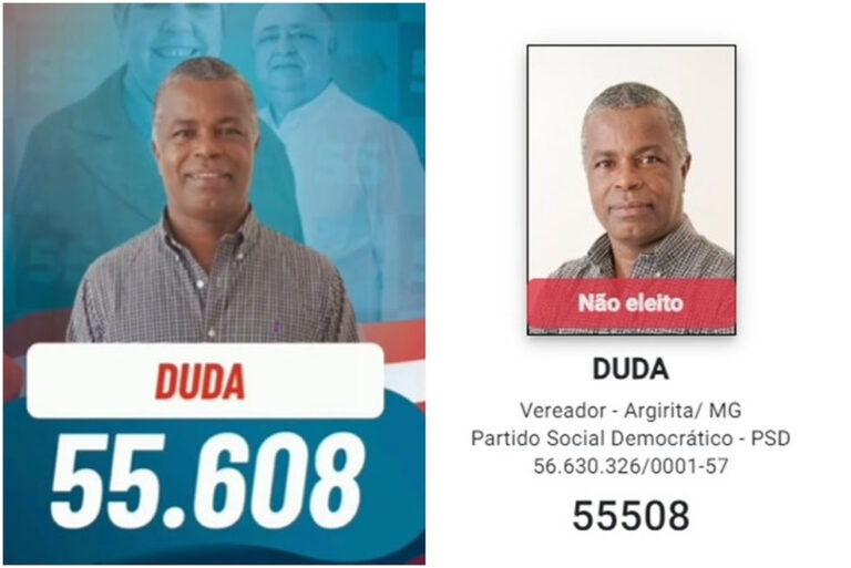 O candidato a vereador em Argirita, José Iria de Araújo (PSD), de 60 anos, conhecido como ‘Duda’, teve o número de urna errado divulgado durante a campanha eleitoral.