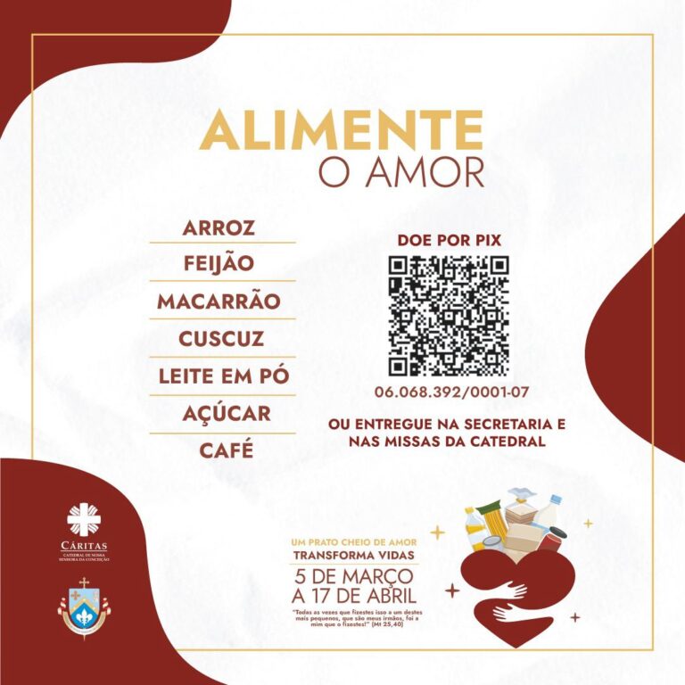 A Paróquia de Nossa Senhora da Conceição, Catedral Diocesana de Campina Grande, por meio da Cáritas Paroquial, continua com a campanha solidária “Alimente o Amor”, com o objetivo em arrecadar alimentos para ajudar famílias em situação de vulnerabilidade e pessoas em situação de rua atendidas pelas ações sociais da paróquia.