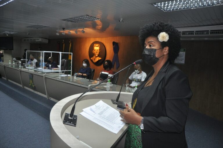 Homenagens – Após a sessão a vereadora Jô Oliveira também foi homenageada pelos presentes, que celebraram a presença da primeira vereadora negra na Casa de Félix Araújo. O momento contou com música, poesia e a presença de movimentos sociais, a exemplo do Levante Popular da Juventude, além da mãe da vereadora, Sebastiana (Dona Basta).