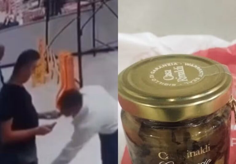O vídeo foi registrado na quarta-feira (8), por volta das 16h, na unidade da rede Palato. A TV Globo apurou que o produto furtado foi um carpaccio de trufas negras, uma iguaria usada para comer com pães. O alimento, vendido em conserva, custa R$ 300.