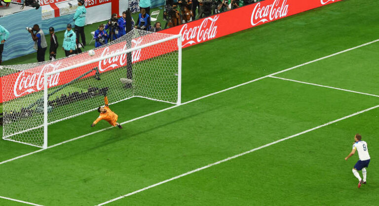 Aos 9, depois de pênalti em Saka, Harry Kane bateu e fez seu segundo gol na Copa do Catar, seu oitavo na história dos Mundiais.