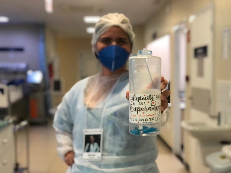 O propósito da criação se deu pelo momento em que o paciente e a equipe vencem mais uma fase do tratamento e chega até a extubação. “A ideia de um pote de esperança no qual colocamos os cuff de extubação de cada paciente que conseguiu vencer o processo de intubação orotraqueal é inspirador, pois nos faz refletir como cada detalhe pode mudar o prognóstico e o futuro de pais, mães, filhos, irmãos, avós, enfim os amores de alguém. Cada paciente que abre os olhos, aperta nossa mão ou sorri é algo a ser comemorado e inspirado, pois nosso papel é desenvolvido com amor e empatia”, expressou Saionara Açucena, fisioterapeuta da UTI Covid 7.