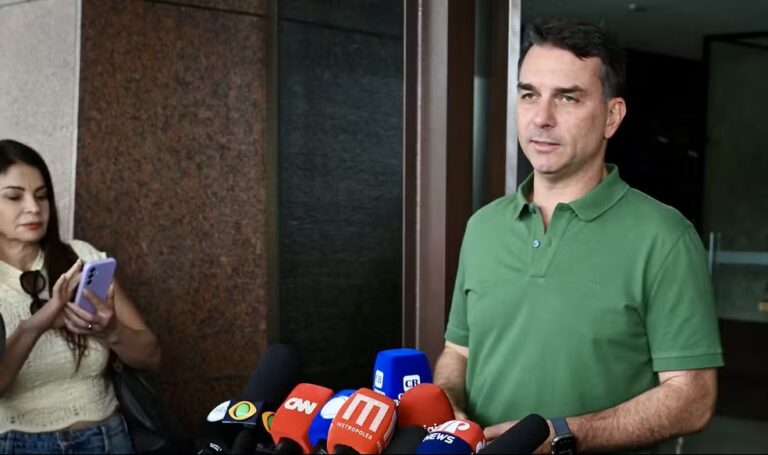 Filho mais velho do ex-presidente Jair Bolsonaro (PL), o senador participou de um culto evangélico em Brasília neste domingo. Na saída, ele indicou que a contrapartida para retirar a pré-candidatura ao Palácio do Planalto envolve a discussão de um projeto de anistia aos condenados pelo Supremo Tribunal Federal (STF) pela trama golpista, o que beneficiaria diretamente seu pai, que está preso.