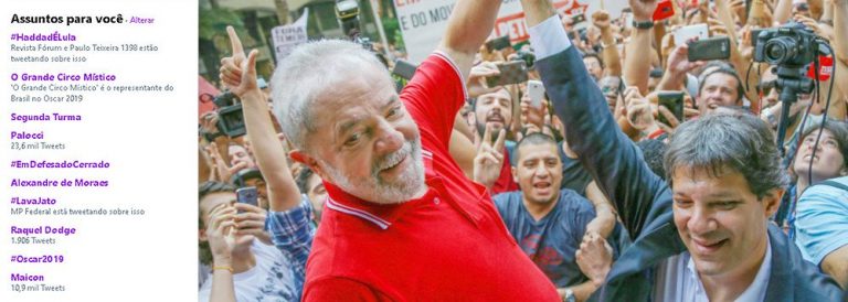#HADDADÉLULA lidera assuntos mais comentados no twitter mundial