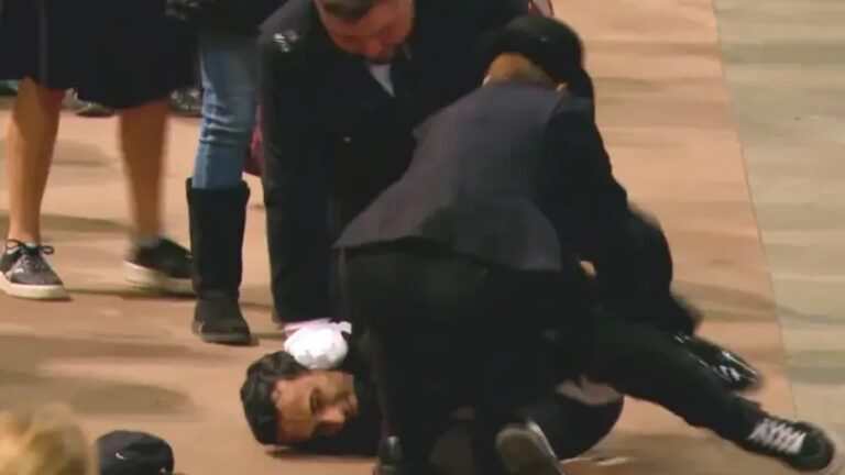 Segundo o jornal britânico “The Guardian”, o homem, cujo nome não foi revelado, saiu da fila e conseguiu atravessar a área isolada onde está o caixão. Rapidamente, guardas que estavam no local conseguiram detê-lo, derrubando-o no chão.