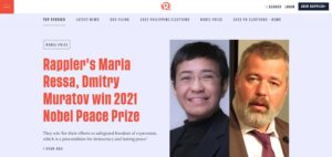 Nobel da Paz 2021 vai para os jornalistas Maria Ressa e Dmitry Muratov por defesa da liberdade de expressão