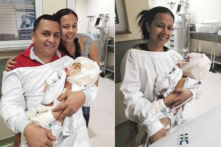 Após uma cirurgia concluída no domingo (28) que durou mais de 14 horas, os pais das gêmeas siamesas Maria Ysabelle e Maria Ysadora, 2, que nasceram unidas pela cabeça, conseguiram segurá-las no colo.