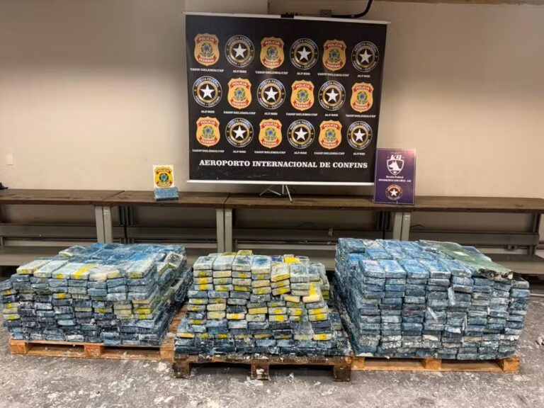 A Polícia Federal (PF) e a Receita Federal do Brasil (RFB) apreenderam cerca de 1,2 tonelada de cocaína no Terminal de Cargas do Aeroporto Internacional de Confins, na Região Metropolitana de Belo Horizonte. A droga estava embalada em blocos prensados e seria enviada para Lisboa, em Portugal, com destino final em Madri, na Espanha.
