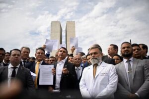 Senadores e deputados de oposição protestaram nesta terça-feira (5), no Congresso Nacional, contra a prisão domiciliar do ex-presidente Jair Bolsonaro (PL).O grupo também anunciou que vai passar a obstruir os trabalhos da Câmara e do Senado. A medida é um…