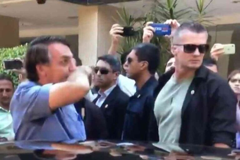 Imagens da TV Globo registraram na manhã desta sexta-feira (10) o momento que o presidente Jair Bolsonaro (sem partido) cumprimenta apoiadores, entre eles uma idosa, logo após limpar o nariz próximo a mão.