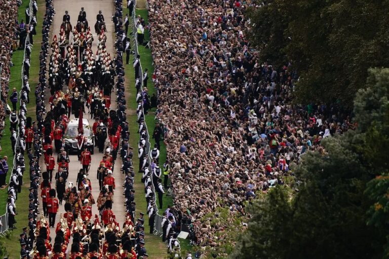 Antes do funeral, o caixão ficou desde o dia 14 no Palácio de Westminster para receber homenagens do público. Para ver a rainha, no entanto, as pessoas tiveram que enfrentar filas de mais de 8 km e até 17 horas de espera.