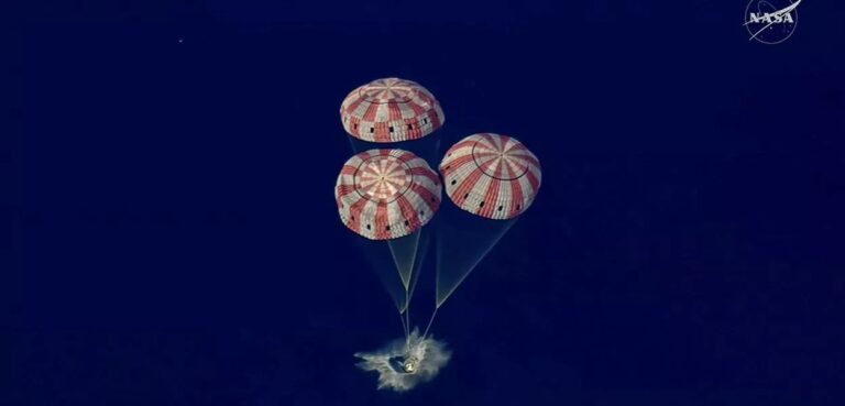 A cápsula Orion da Nasa, batizada de Integrity, caiu suavemente de paraquedas no mar ao largo da costa sul da Califórnia, pouco depois das 17 horas (horário do Pacífico), concluindo uma missão que levou os astronautas mais longe no espaço do que qualquer outro voo anterior.