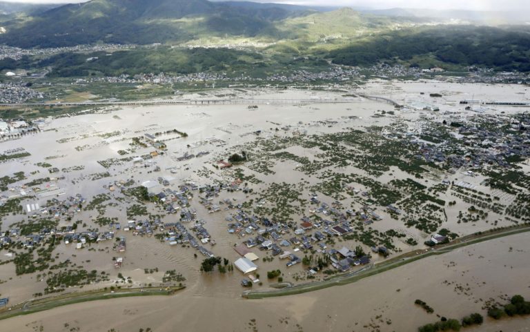 A NHK mostrou áreas residenciais inundadas nas regiões Centro e Leste do Japão, onde rios transbordam. Maiores danos foram registrados em Nagano. A emissora também mostrou helicópteros militares transportando passageiros que estavam isolados.