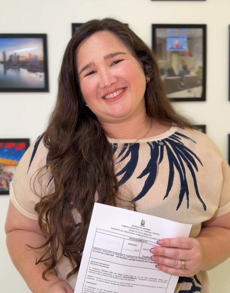 Há pouco menos de dois meses desde a nomeação, Pâmela, que também é a vereadora mais jovem da CMCG, fortalece o compromisso com a comunidade, apresentando as solicitações propostas pela população e incentivando a participação popular nas resoluções e tomadas de decisão.